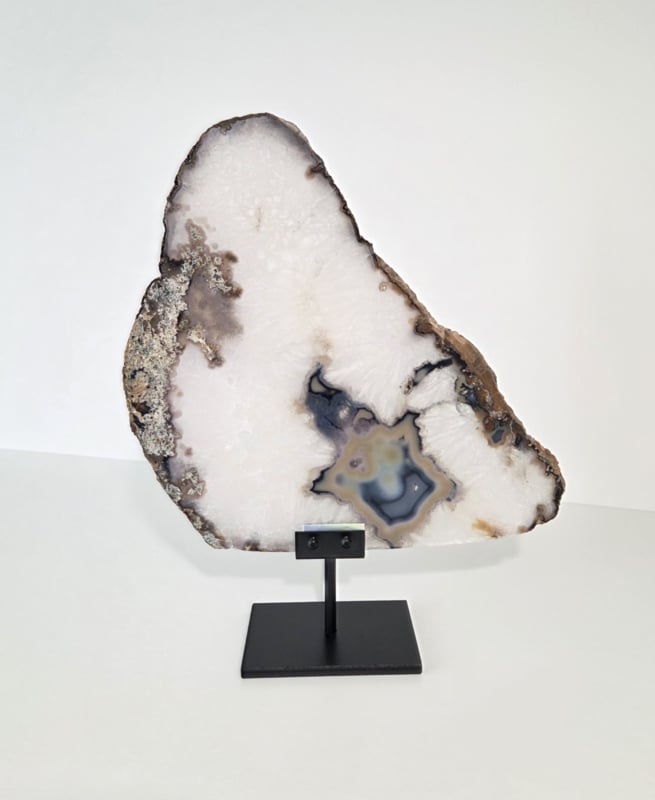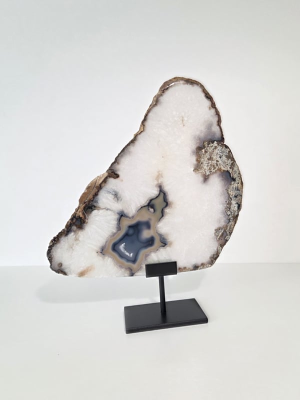 De standaard wordt meegeleverd, de Agaat Plak is dankzij stevige schroefjes eenvoudig vast te draaien. Zo staat deze prachtige Agaat Plak niet alleen stijlvol, maar ook extra solide, dankzij het zware materiaal van de standaard blijft hij stabiel en veilig op zijn plek.