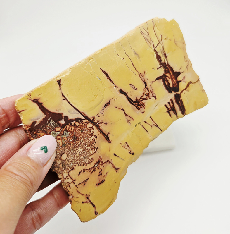 Mookaiet jaspis is een geel met bruin gekleurde steen, waarin ook rood-tinten voorkomen. Het kan op verschillend manieren worden geschreven; Mokaiet, Mookiet, Moakiet, Moukiet, Mookeriet en Mook.