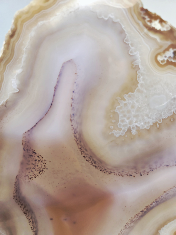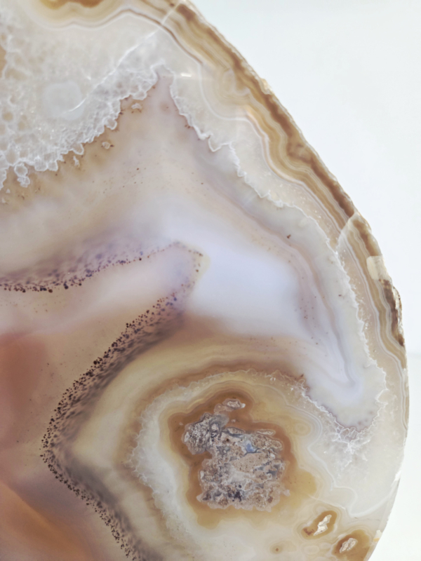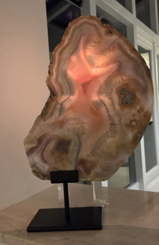 Fantastisch mooie Agaat Plak XL op standaard met prachtige zichtbare lagen. Tip: Een kaars achter deze plak branden is waanzinnig mooi en heeft iets super magisch. Bijzonder en anders, opvallend uniek!