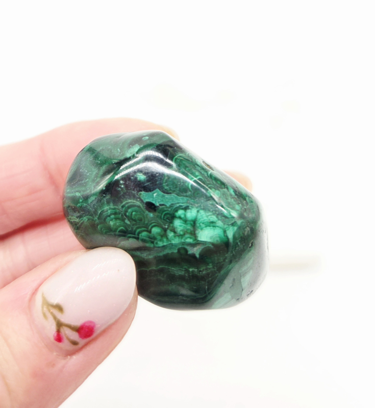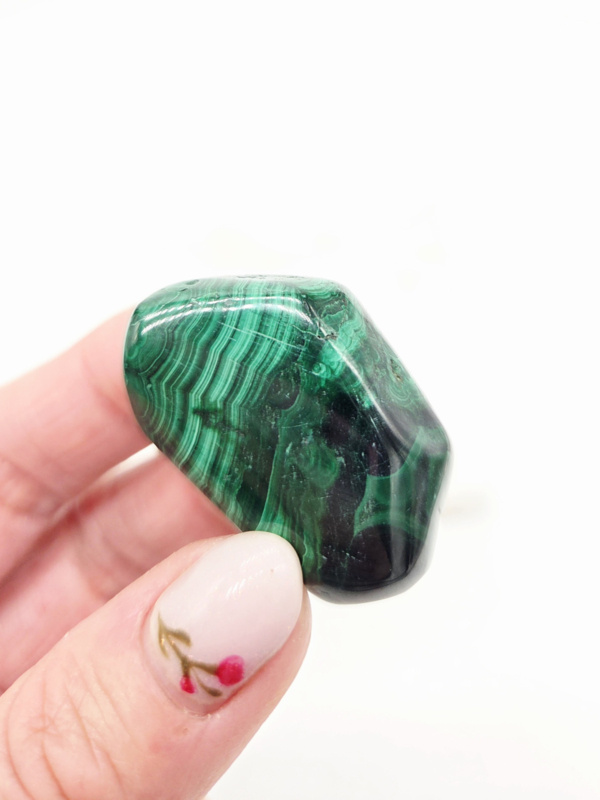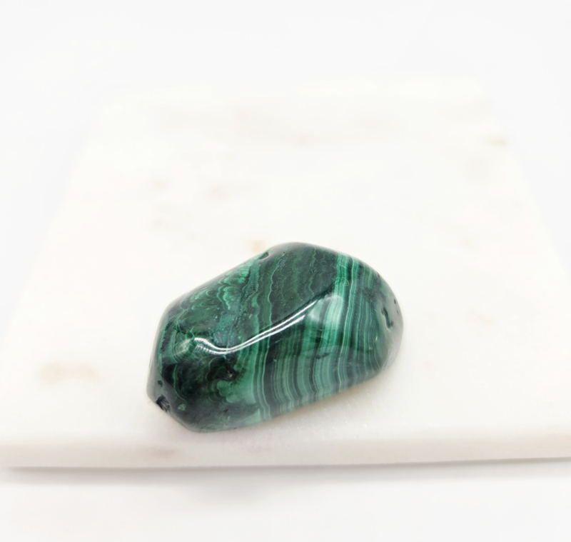Deze steen motiveert je om een intensief en passievol leven te hebben. Zoals je kunt zien straalt deze steen kracht uit, bevorderd je fantasie en helpt je al je remmingen en schaamte te ontnemen. Malachiet is een goede edelsteen voor iemand die zijn besluitvaardigheden wil bevorderen, avontuurlijkheid wil vergoten en sneller vriendschappen wil sluiten. Malachiet helpt goed tegen nachtmerries en tegen angsten en fobieën. Deze steen beschermt je tegen elektromagnetische stralingen zoals van computers, mobiele telefoons en aardstralen. Ook is het een sterke beschermsteen en neemt negatieve energieën en vervuiling gemakkelijk op uit zowel de buiten lucht als je lichaam.