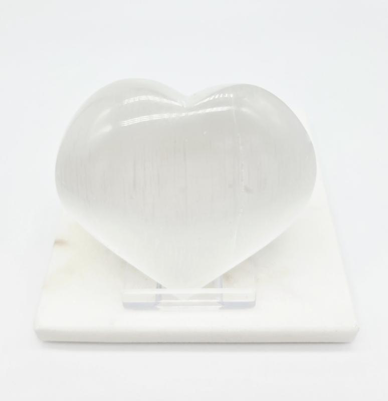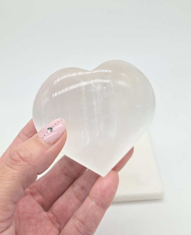 De naam Seleniet komt van de Griekse maangodin Selene, wanneer je dit hart draait zie je maanachtige lichtschijn er doorheen. Seleniet werkt verzoenend en verbindend tussen geliefden.